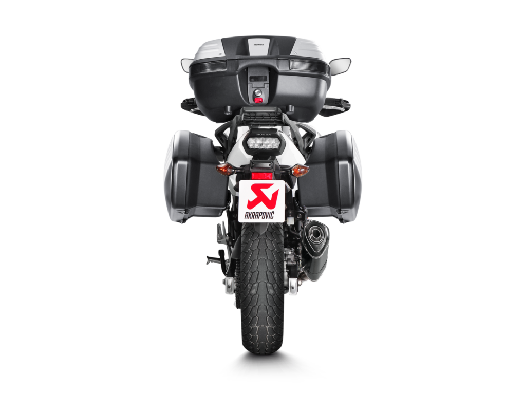 Exhaust system is compatible with Honda side cases and central stand.
