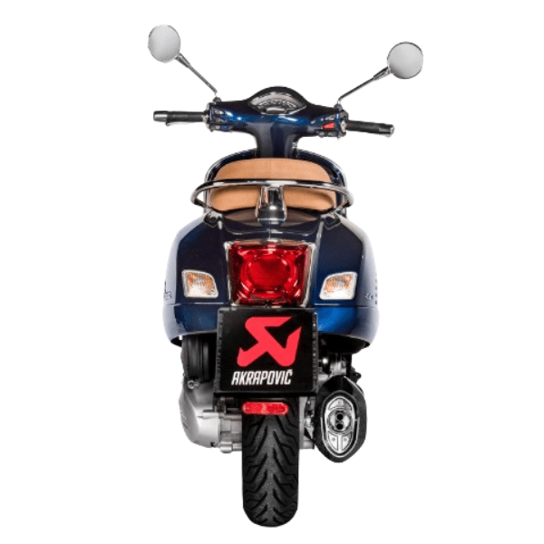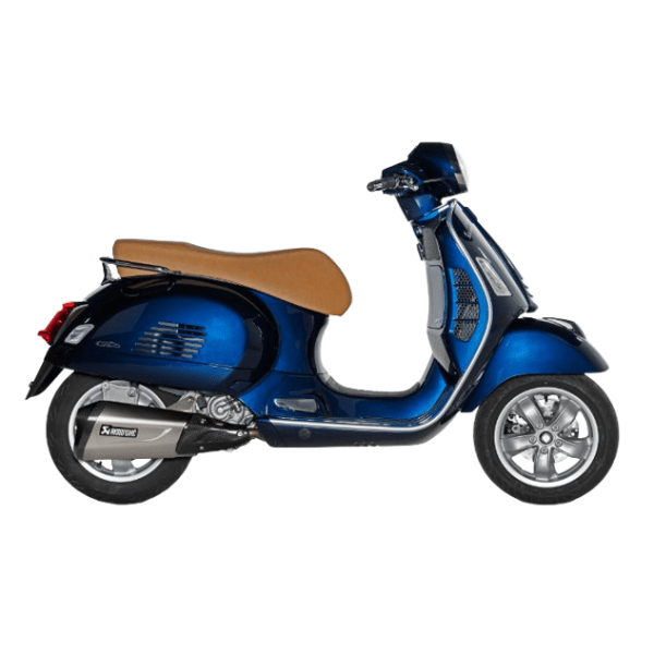 Akrapovic Vespa GTS Super 300 21-24 Slip-On Titanium – light weight, improved performance, and a deep, sporty sound with no remapping required.